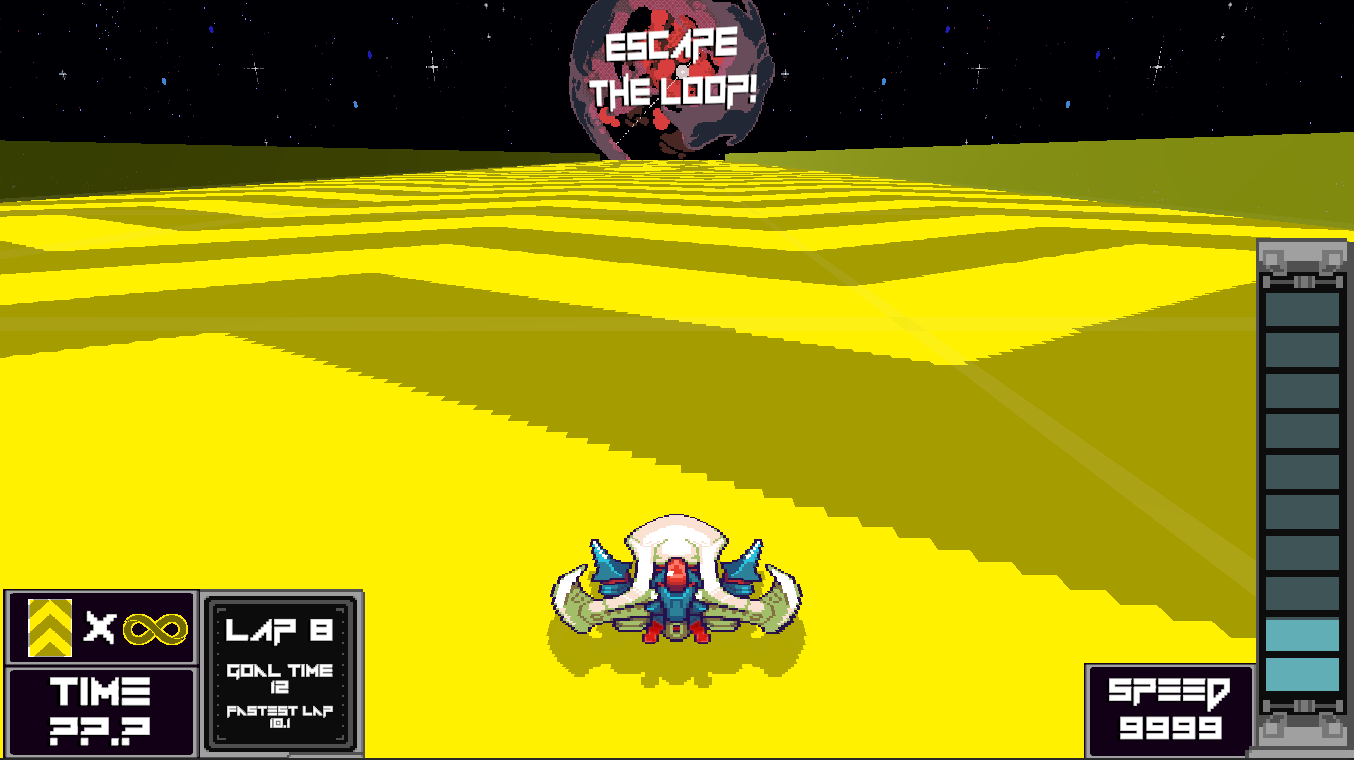 Beautiful game, reminds me of F-Zero, really love the feel of speed at the last laps (when the track is filled with boost pads), the music and SFXs were also great, GJ!